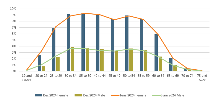 Our largest employee group continues to be women working in a part-time capacity (43.13%). There has been a small increase in full-time employment (1.77%) since June 2024.
